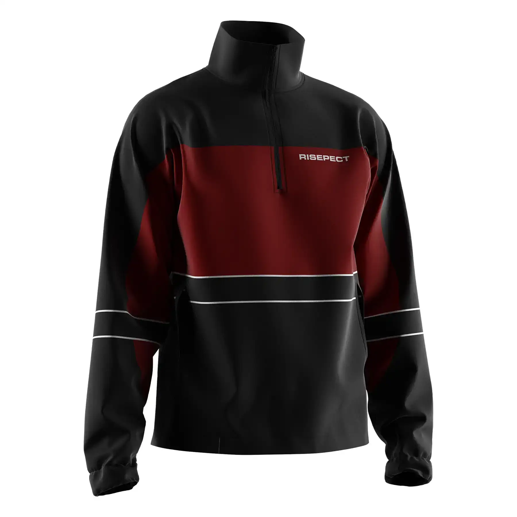 Black Red Panel Athletic 1/3 Zip Pullover Windproof Jacket Custom