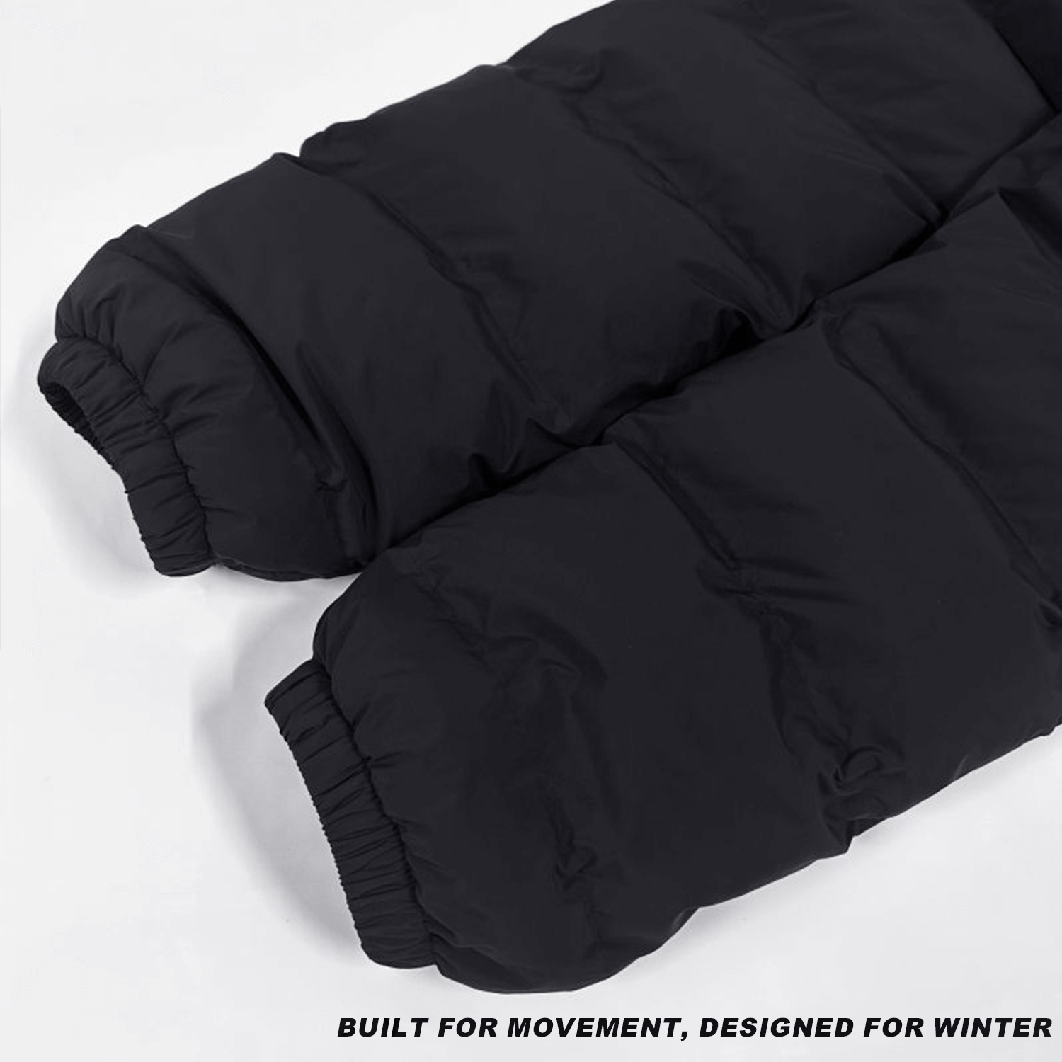 The Custom Athletic Puffy Pants in Matte Black are engineered for serious performance and professional-grade winter protection.