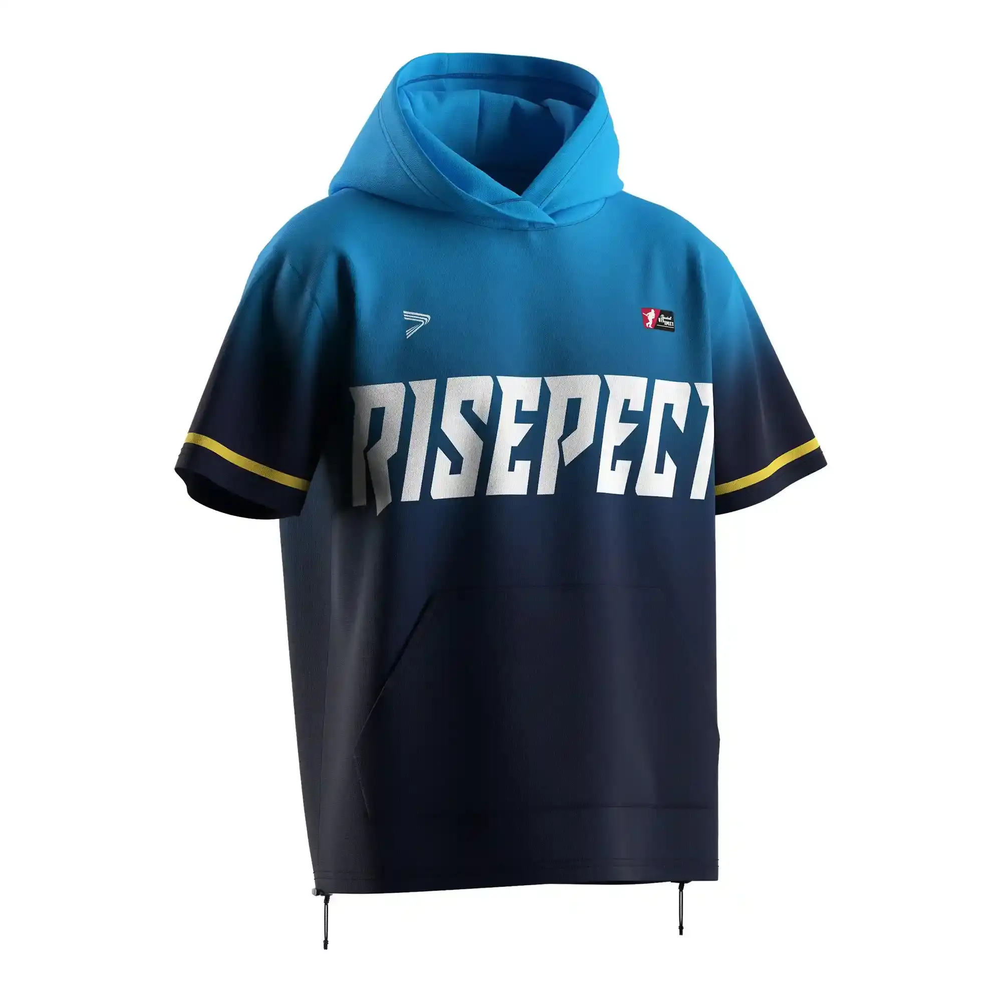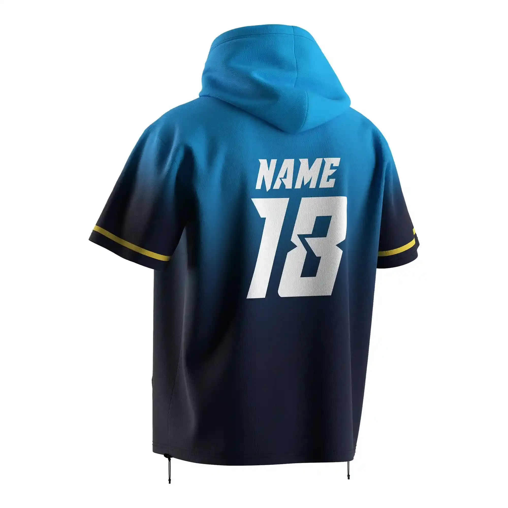 Custom Logo SS Baseball Hoodie Adjustable Hem Blue Gradient To Black