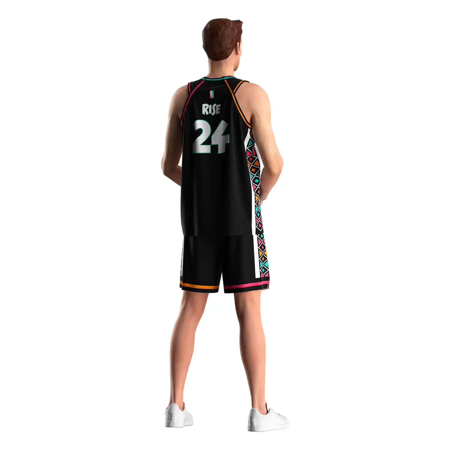 The Men's Black Basketball Tank with Neon Accents OEM Team Jersey is designed for teams and bulk buyers who need high-performance uniforms with strong visual impact and reliable scalability. The slim back cut and wider armholes deliver unrestricted shoulder movement, making it ideal for competitive basketball, training sessions, and tournament play.