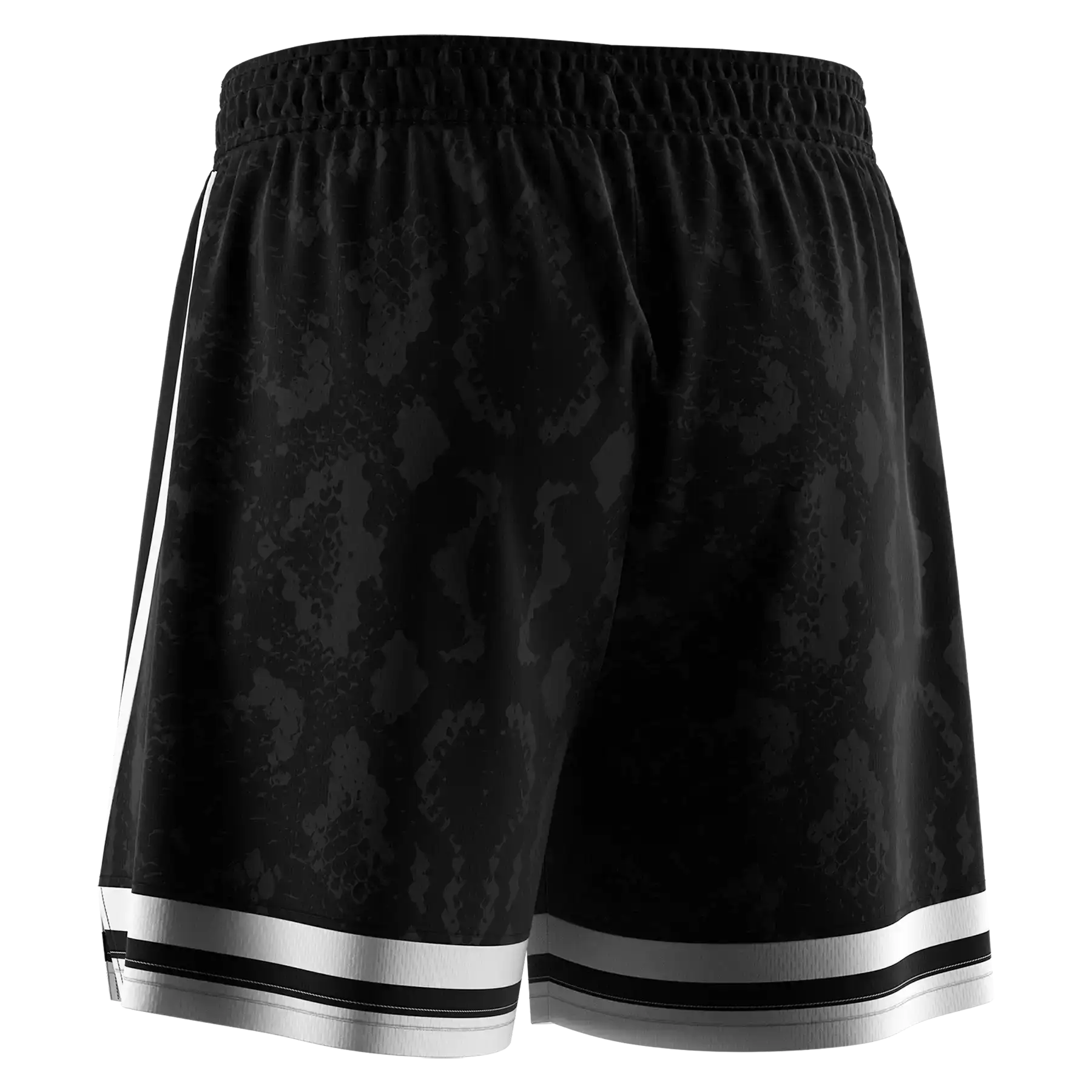 Designed for performance programs, teamwear brands, and private-label buyers, these men's black tone pattern basketball shorts combine athletic functionality with strong visual appeal. The black base with gray print & black white stripes delivers a classic sports look that fits basketball leagues, training apparel, and streetwear-inspired collections.