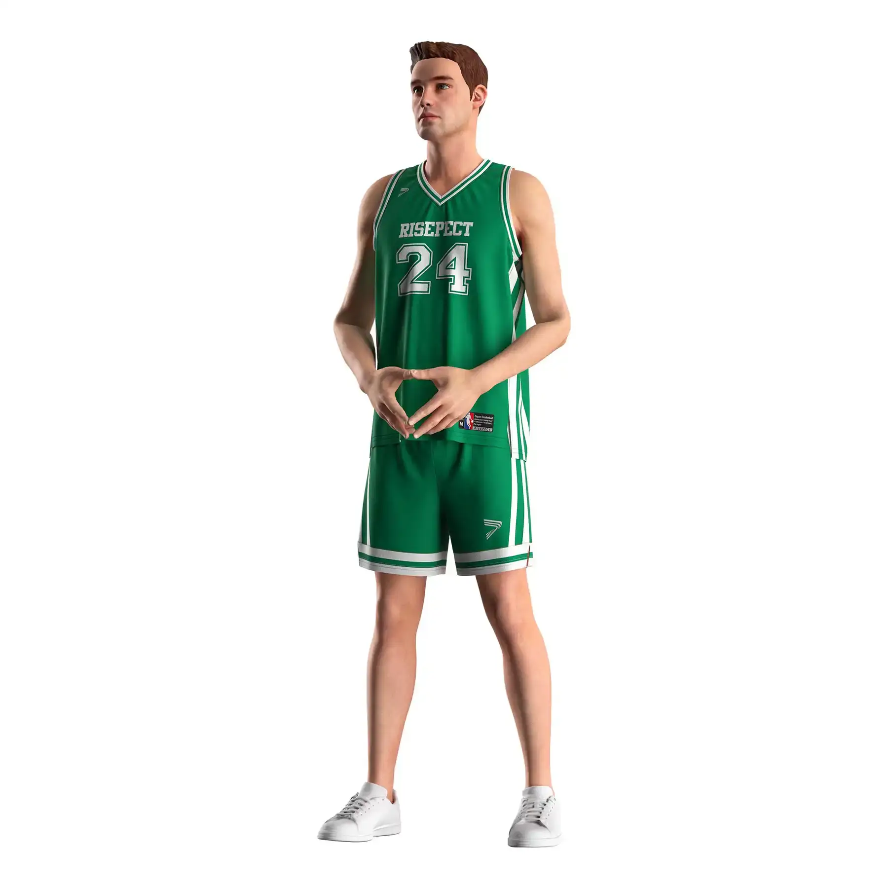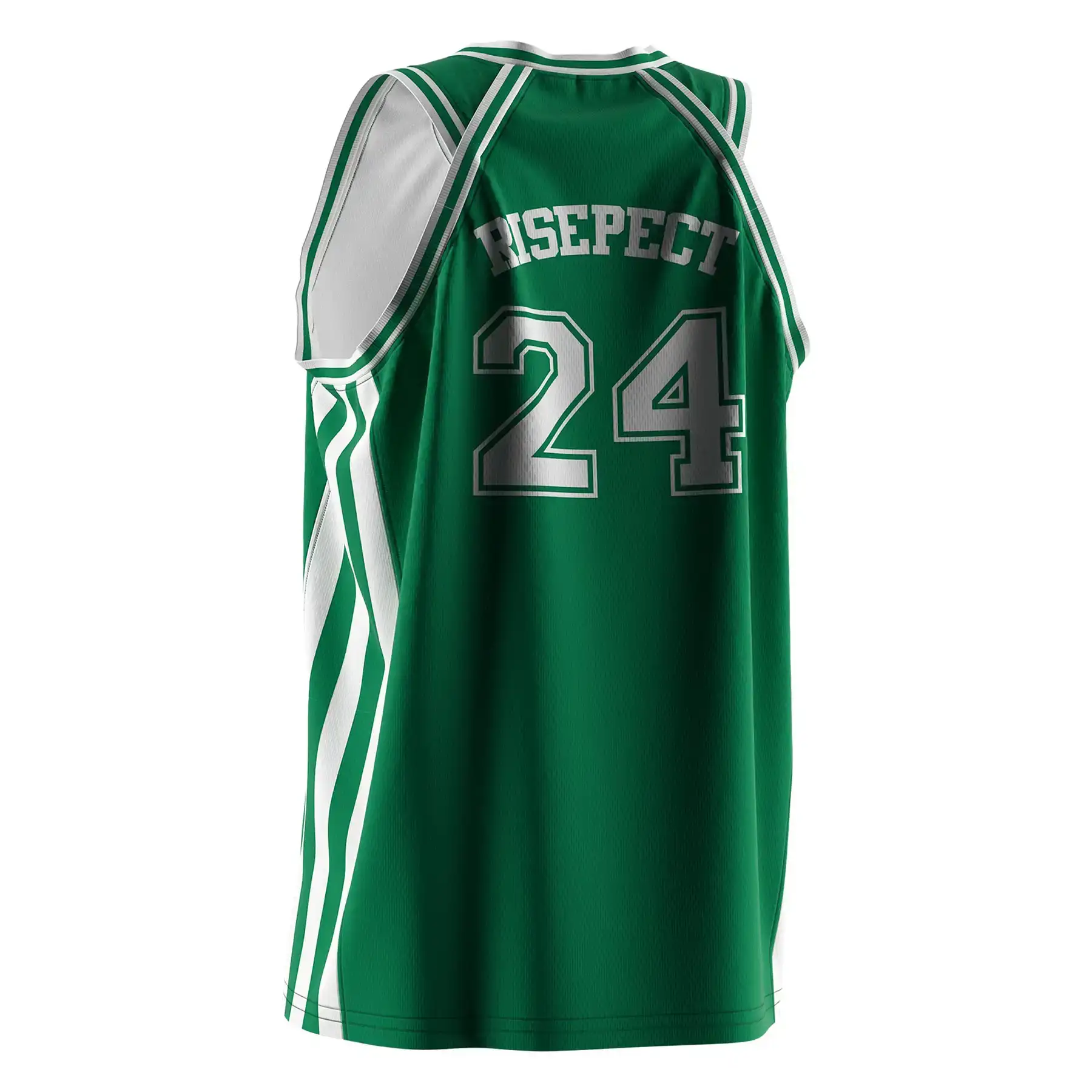 The Men's Green Basketball Tank with White Logo Wholesale Team Vest is designed for teams and bulk buyers who need high-performance uniforms with strong visual impact and reliable scalability. The slim back cut and wider armholes deliver unrestricted shoulder movement, making it ideal for competitive basketball, training sessions, and tournament play.