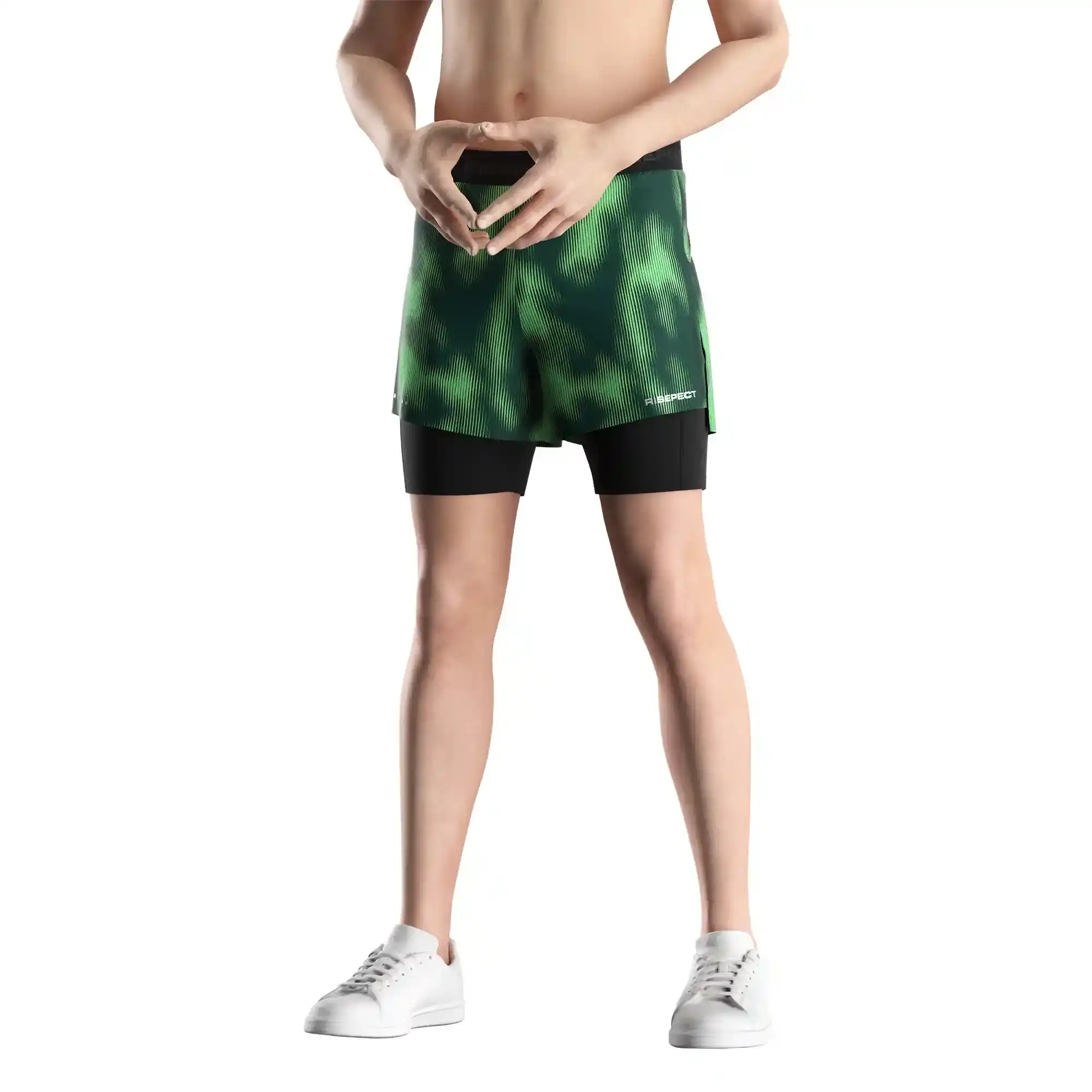 Men's Green Camouflage Print 2-in-1 Running Shorts Custom