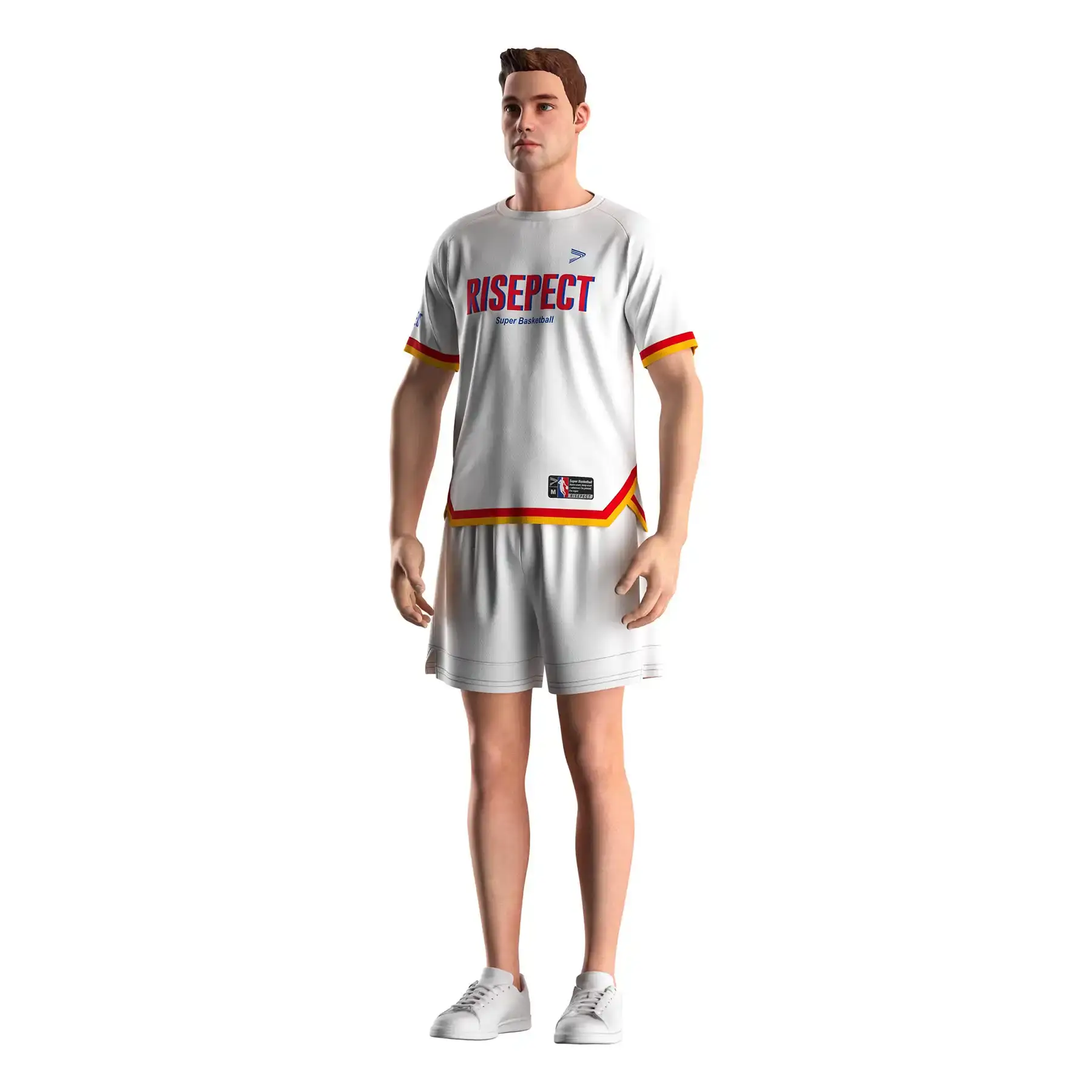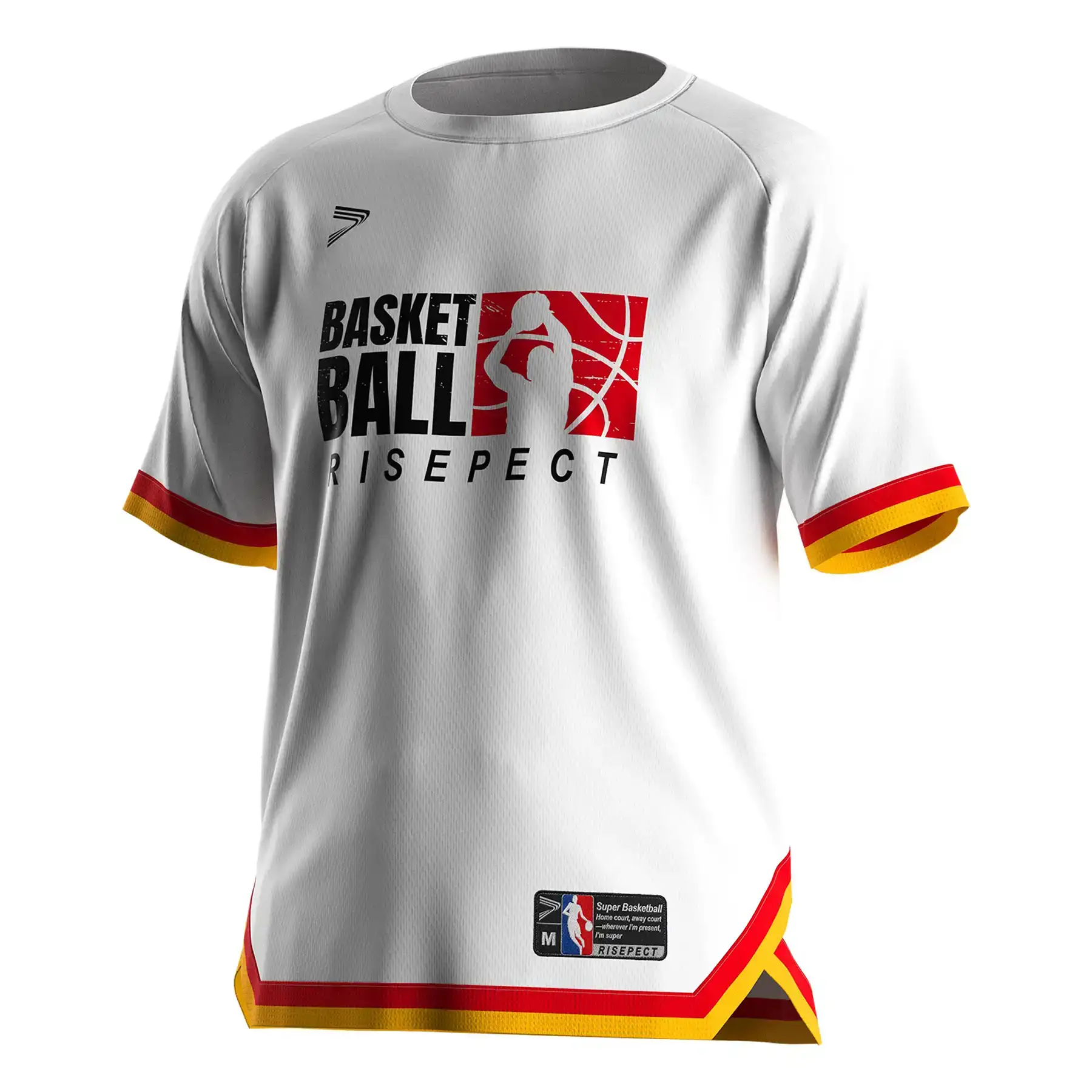 The Men's White Raglan Basketball T-Shirt with Red & Gold Stripe Trim is engineered for teams, brands, and wholesale buyers seeking a high-performance basketball tee shirt with strong visual impact and customization flexibility.