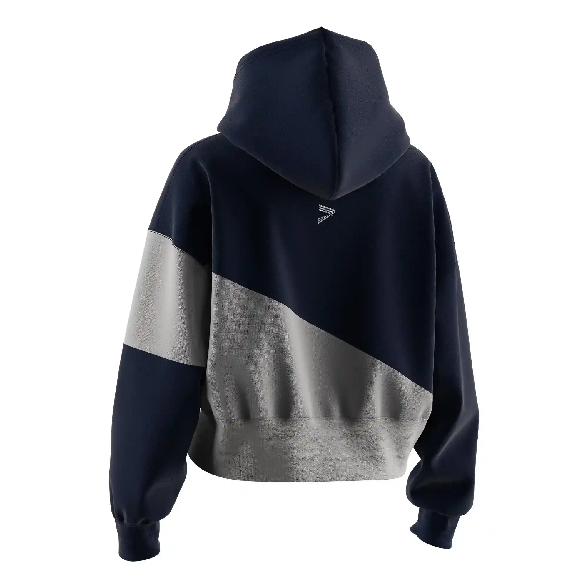 This women's cropped hoodie is developed for contemporary activewear and athleisure collections. The mid-crop silhouette enhances body proportion and creates a visually elongated look. Designed with dropped shoulders for a relaxed yet structured fit, it conforms naturally to the female body shape.