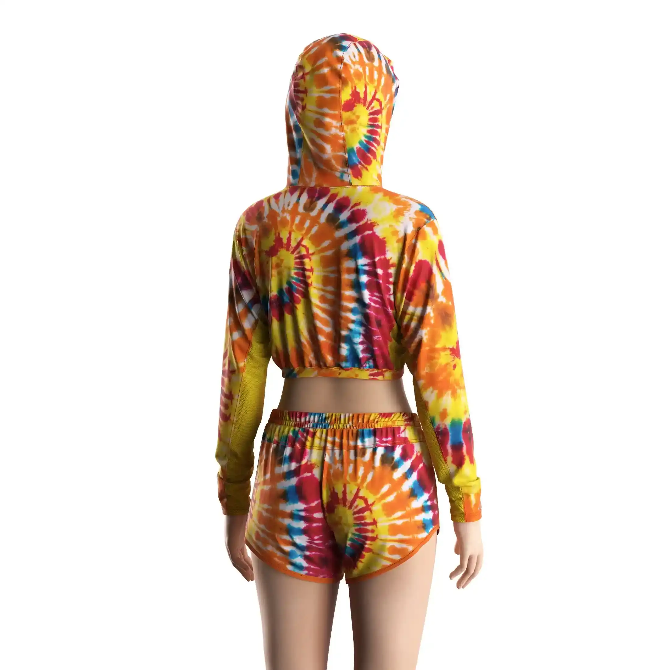 Women's Curved Hem Fishing Shorts Rainbow Tie-dye Pattern