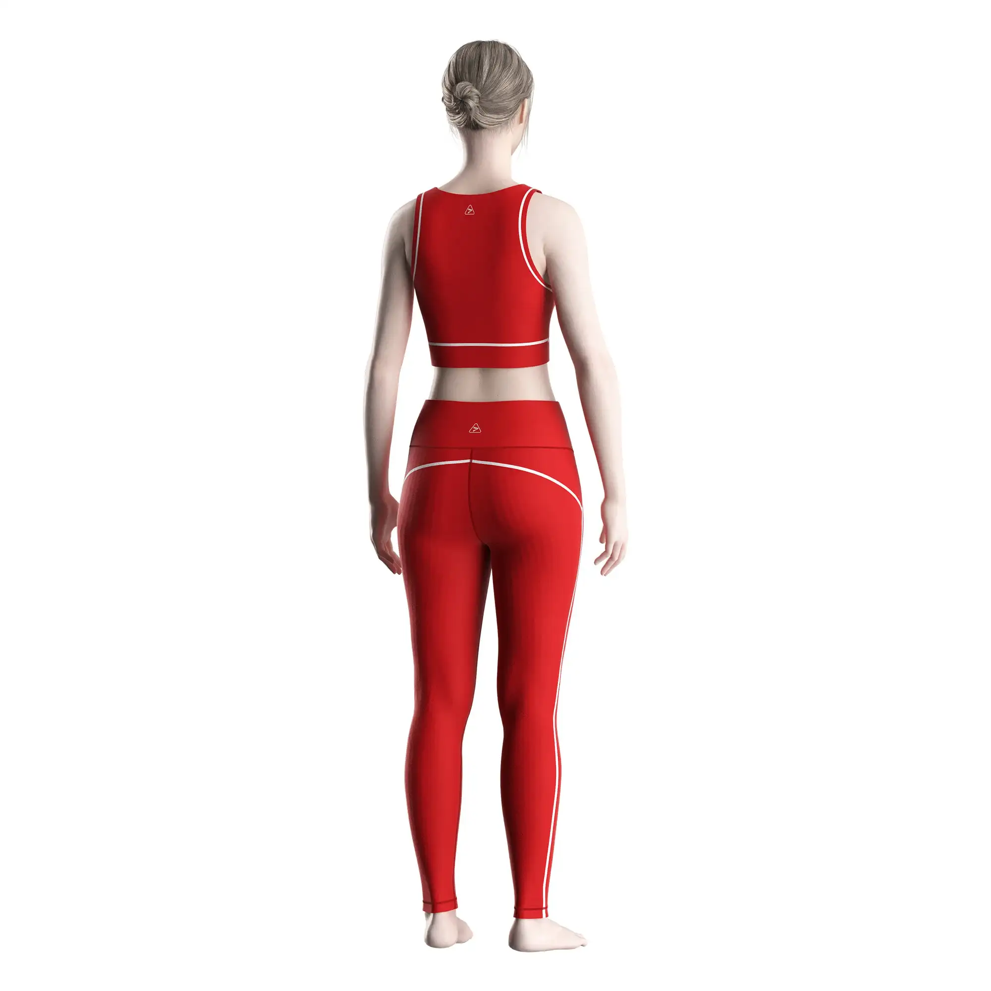 Women's Red Contrast Stitch Sleeveless Crop T-shirt Wholesale Custom